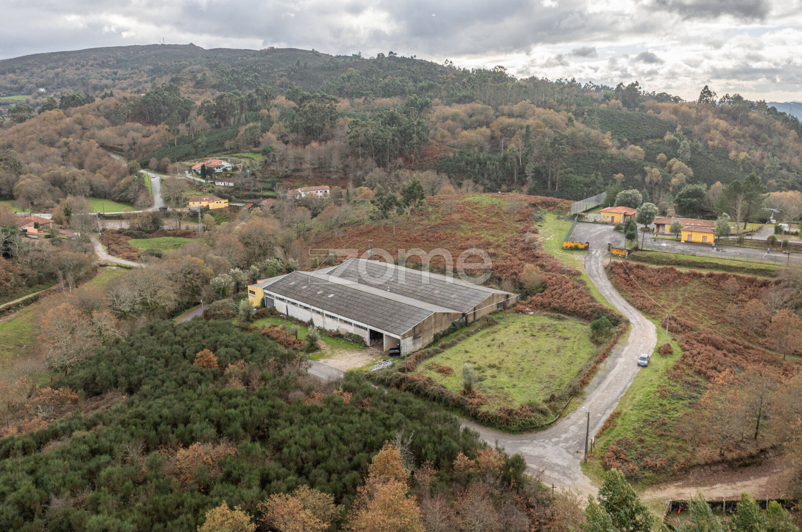 Pavilhão industrial localizado em Aboim da Nóbrega, inserido numa